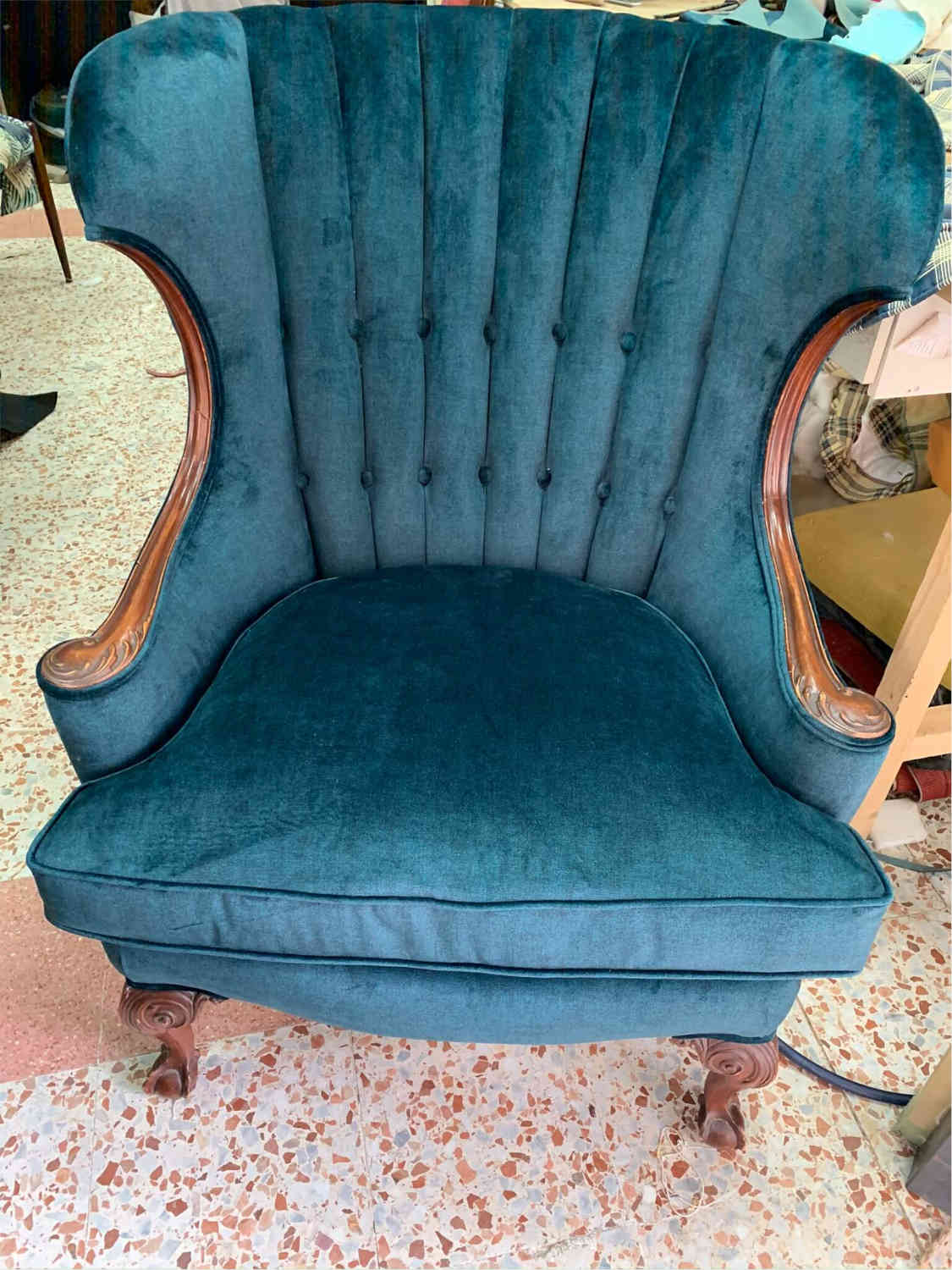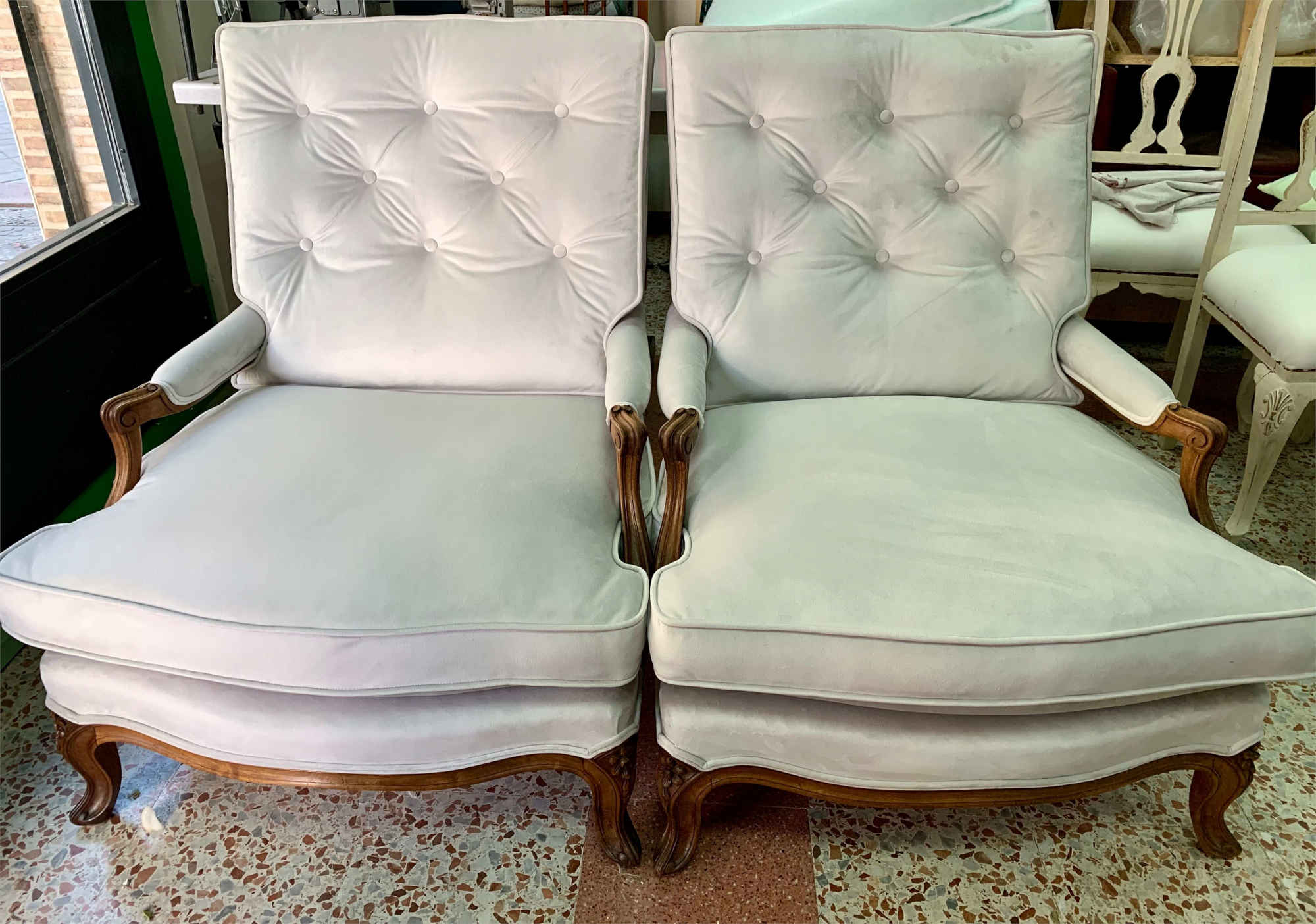 sillón y butaca en terciopelo en Madrid